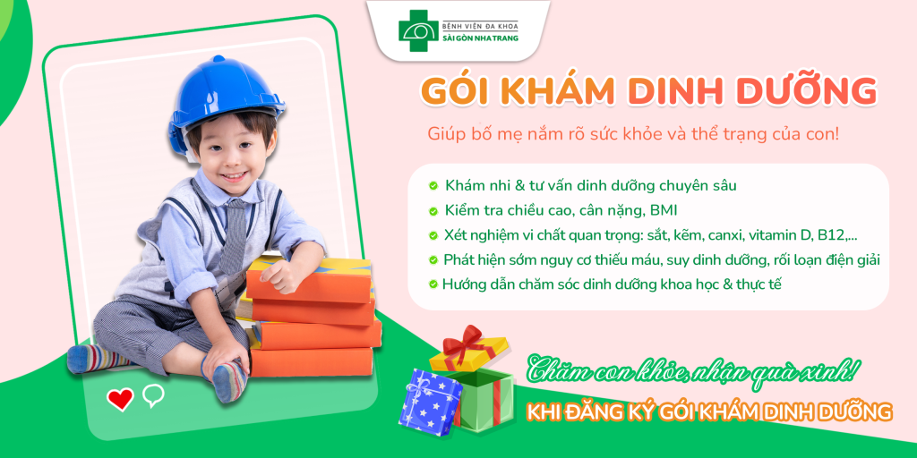 Nhằm giúp ba mẹ chăm sóc dinh dưỡng toàn diện cho bé yêu, Bệnh viện Đa khoa Sài Gòn Nha Trang dành tặng chương trình ưu đãi đặc biệt khi đăng ký Gói Khám Dinh Dưỡng: