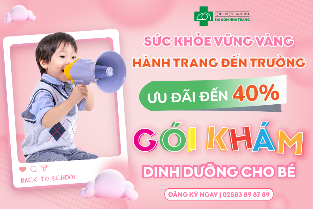 Nhằm đồng hành cùng phụ huynh trong việc chăm sóc sức khỏe dinh dưỡng của trẻ, Bệnh viện Đa khoa Sài Gòn Nha Trang triển khai chương trình Giảm 40% Gói Khám Dinh dưỡng cho Bé. Đây là cơ hội để ba mẹ kiểm tra toàn diện tình trạng dinh dưỡng của con và nhận được những tư vấn khoa học từ bác sĩ chuyên khoa.